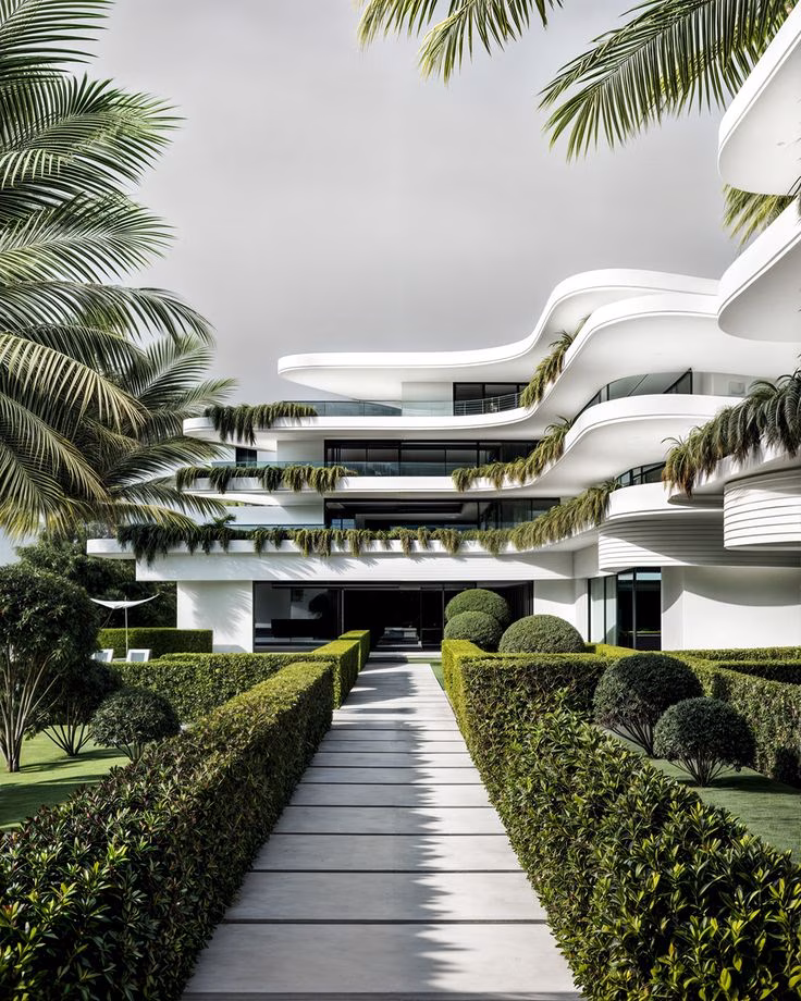 Архитектурная концепция комплекса «Аспро» основана на принципе ярусной посадки зданий, что обеспечивает гармоничное взаимодействие с природным рельефом и максимальное раскрытие панорамных видов.