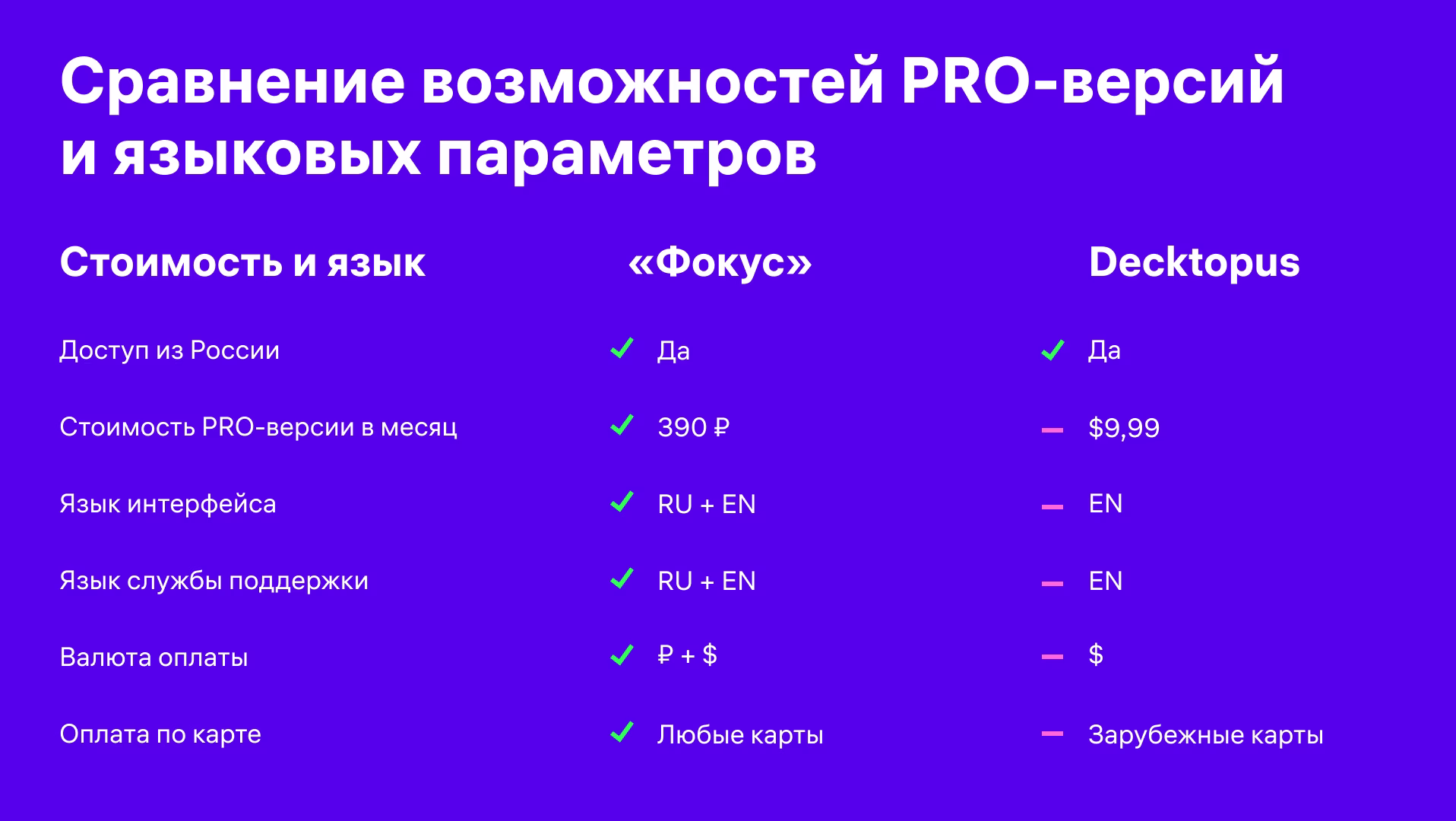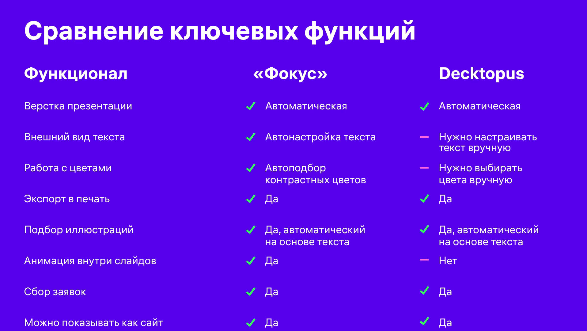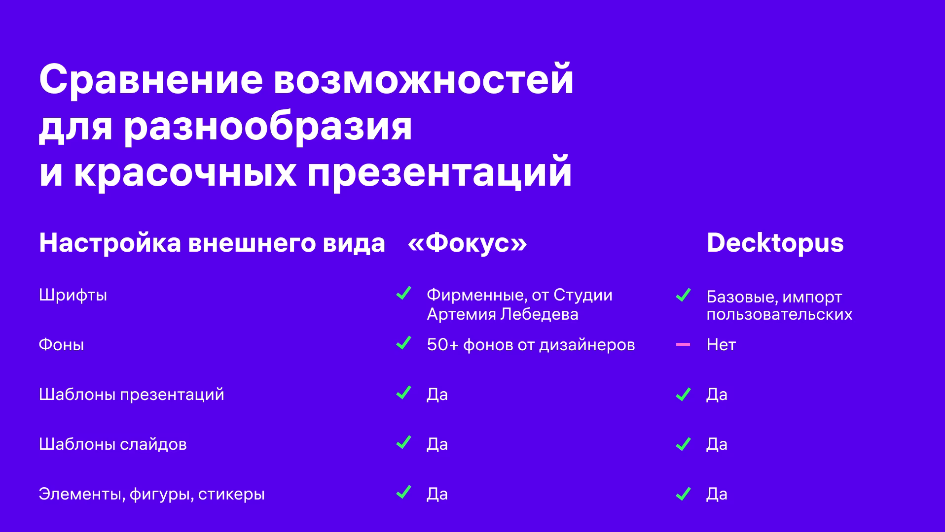 Чтобы работать над презентацией не обязательно начинать с чистого листа. В «Фокусе» собраны сотни шаблонов для быстрого старта. Также, есть специальный раздел авторских презентаций, созданный благодаря пользователям «Фокуса»